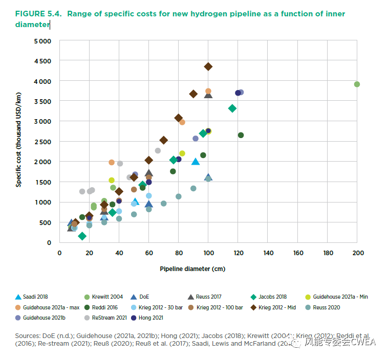 新建輸氫管道的具體成本范圍與管道內(nèi)徑的關(guān)系
