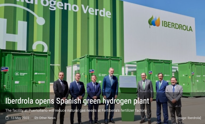 中國儲(chǔ)能網(wǎng)訊:Iberdrola公司在西班牙Puertollano正式開設(shè)耗資1.5億歐元的綠色氫氣廠,西班牙國王出席項(xiàng)目投運(yùn)典禮。