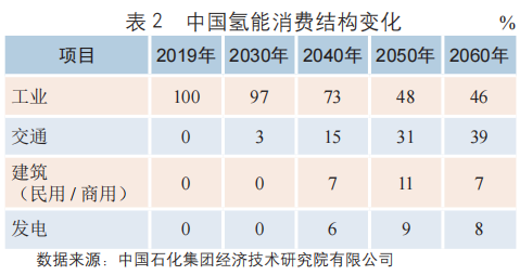 從表2可知,從目前到2030年前碳達(dá)峰,工業(yè)灰氫消費(fèi)達(dá)峰下行,交通用氫占比突破3%。從2030年碳達(dá)峰到2060年碳中和時(shí)期,同樣可分為三個(gè)階段: