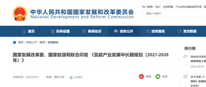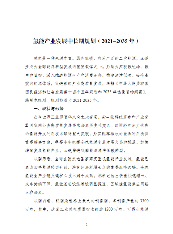 中國儲(chǔ)能網(wǎng)訊:3月23日,為促進(jìn)氫能產(chǎn)業(yè)規(guī)范有序高質(zhì)量發(fā)展,經(jīng)國務(wù)院同意,國家發(fā)展改革委、國家能源局聯(lián)合印發(fā)《氫能產(chǎn)業(yè)發(fā)展中長(zhǎng)期規(guī)劃(2021-2035年)》(以下簡(jiǎn)稱《規(guī)劃》)。