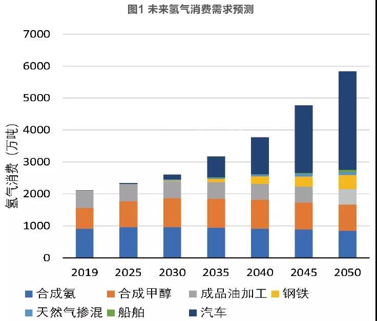 據(jù)中國氫能聯(lián)盟預(yù)計(jì),到2030年中國氫氣需求量將達(dá)到3500萬噸,在終端能源體系中占比5%,主要增量來自交通運(yùn)輸?shù)娜剂想姵剀?,產(chǎn)能缺口約1000萬噸/年;到2050年氫能將在中國終端能源體系中占比至少達(dá)到10%,氫氣需求量接近6000萬噸,其中交通運(yùn)輸領(lǐng)域用氫2458萬噸,工業(yè)領(lǐng)域3370萬噸,其他領(lǐng)域110萬噸,產(chǎn)業(yè)鏈年產(chǎn)值約12萬億元,產(chǎn)能缺口約3500萬噸/年。