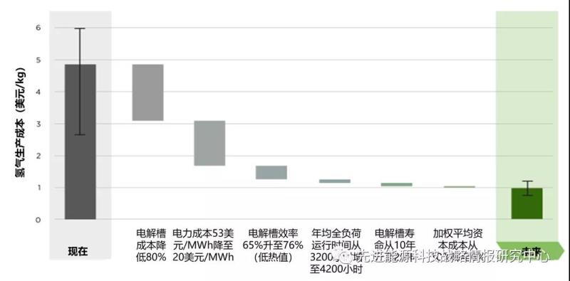 圖1 未來制氫成本降低要素分解(單位:美元/kg)