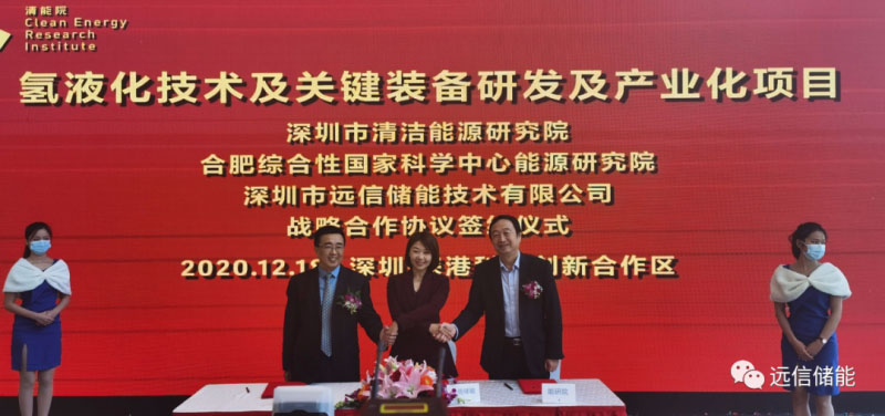 中國(guó)儲(chǔ)能網(wǎng)訊:近日,深圳市遠(yuǎn)信儲(chǔ)能技術(shù)有限公司(以下簡(jiǎn)稱(chēng)“遠(yuǎn)信儲(chǔ)能”)與合肥綜合性國(guó)家科學(xué)中心能源研究院(以下簡(jiǎn)稱(chēng)“能源研究院”)、深圳市合眾清潔能源研究院(以下簡(jiǎn)稱(chēng)“清能院”)在深圳深港科技創(chuàng)新合作區(qū)共同簽署“氫液化技術(shù)及關(guān)鍵裝備研發(fā)及產(chǎn)業(yè)化項(xiàng)目合作協(xié)議”,中國(guó)工程院院士、能源研究院院長(zhǎng)李建剛、清能院常務(wù)副院長(zhǎng)楊曉峰出席簽約儀式。