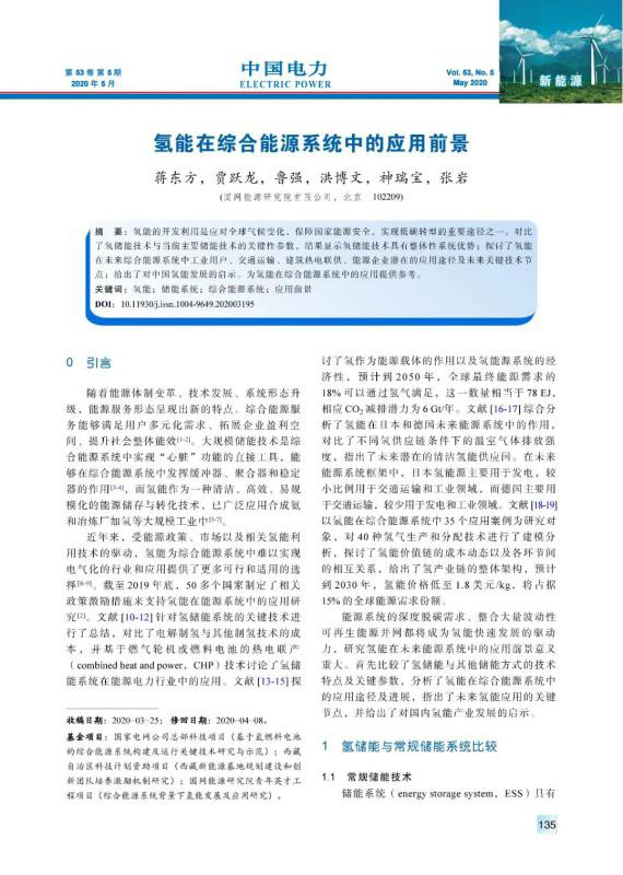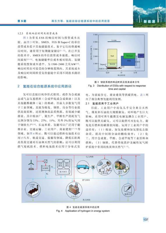 氫能的開發(fā)利用是應(yīng)對全球氣候變化,保障國家能源安全,實(shí)現(xiàn)低碳轉(zhuǎn)型的重要途徑之一。對比了氫儲能技術(shù)與當(dāng)前主要儲能技術(shù)的關(guān)鍵性參數(shù),結(jié)果顯示氫儲能技術(shù)具有整體性系統(tǒng)優(yōu)勢;探討了氫能在未來綜合能源系統(tǒng)中工業(yè)用戶、交通運(yùn)輸、建筑熱電聯(lián)供、能源企業(yè)潛在的應(yīng)用途徑及未來關(guān)鍵技術(shù)節(jié)點(diǎn);給出了對中國氫能發(fā)展的啟示。為氫能在綜合能源系統(tǒng)中的應(yīng)用提供參考。