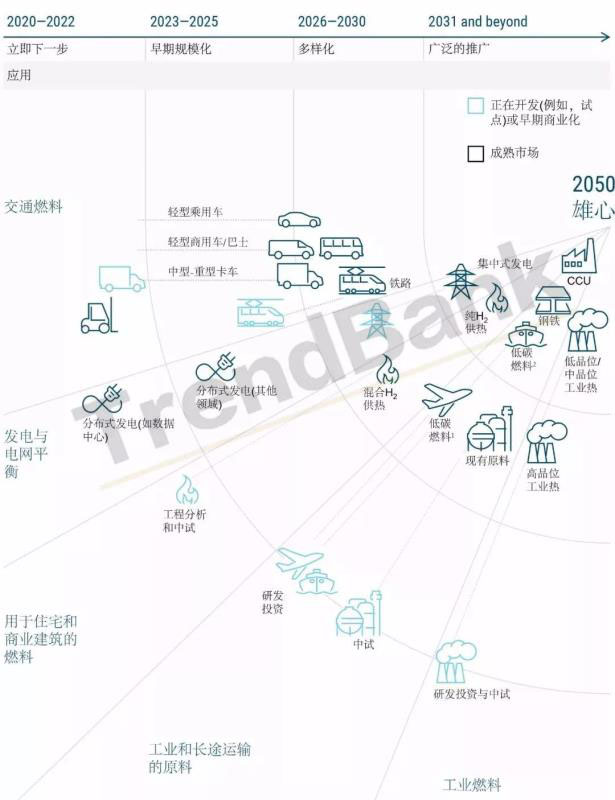 根據(jù)報(bào)告,美國(guó)計(jì)劃2020年到2022年,實(shí)現(xiàn)氫能在小型乘用車、叉車、分布式電源、家用熱電聯(lián)產(chǎn)、碳捕捉等領(lǐng)域應(yīng)用。