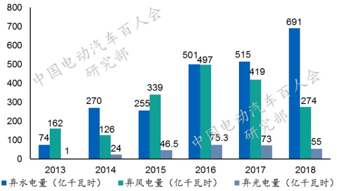 * 圖表2 2013~2018年中國可再生能源棄電量
