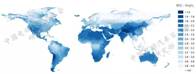 * 圖表9 國際能源署關(guān)于利用風(fēng)能和太陽能進(jìn)行電解制氫水的未來預(yù)期制氫成本分析