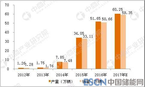 2012-2017年中國新能源汽車產(chǎn)銷量情況