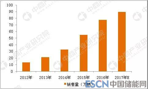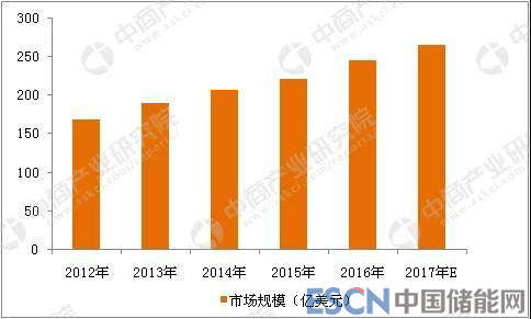 2012-2017年全球鋰電池市場規(guī)模情況