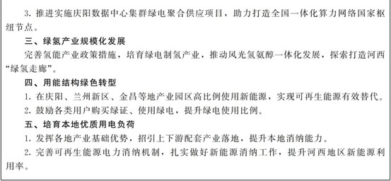 (九)促進(jìn)用能結(jié)構(gòu)綠色轉(zhuǎn)型。大力實施可再生能源替代行動,構(gòu)建以電能消費為主導(dǎo)的清潔能源消費體系。穩(wěn)步有序推進(jìn)工業(yè)、交通運輸、建筑、農(nóng)業(yè)農(nóng)村、新基建等領(lǐng)域用能綠電替代。倡導(dǎo)企事業(yè)單位辦公綠色用能,提高城鄉(xiāng)居民終端用能電氣化水平,持續(xù)提升電能占終端能源消費比重。(責(zé)任單位:省能源局、省發(fā)展改革委、省工信廳、省交通運輸廳、省住建廳、省農(nóng)業(yè)農(nóng)村廳、省機關(guān)事務(wù)局、國網(wǎng)甘肅省電力公司)