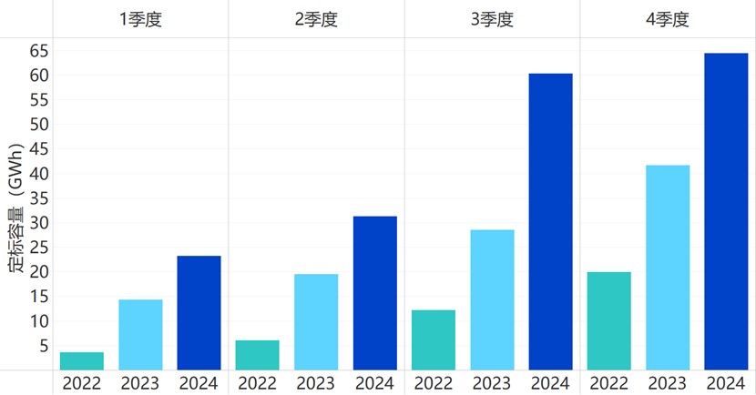 圖 2022-2024年各季度新型儲(chǔ)能電站項(xiàng)目采招落地容量