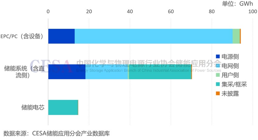 圖 2024年各應(yīng)用場(chǎng)景儲(chǔ)能采招落地容量及占比