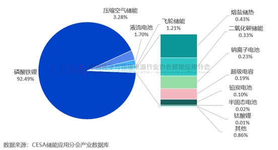 圖 2024年各技術(shù)路線儲(chǔ)能項(xiàng)目采招落地規(guī)模占比