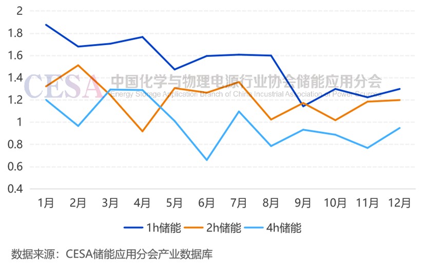 圖1 2024年1-12月磷酸鐵鋰電池儲能EPC中標均價(元/Wh)