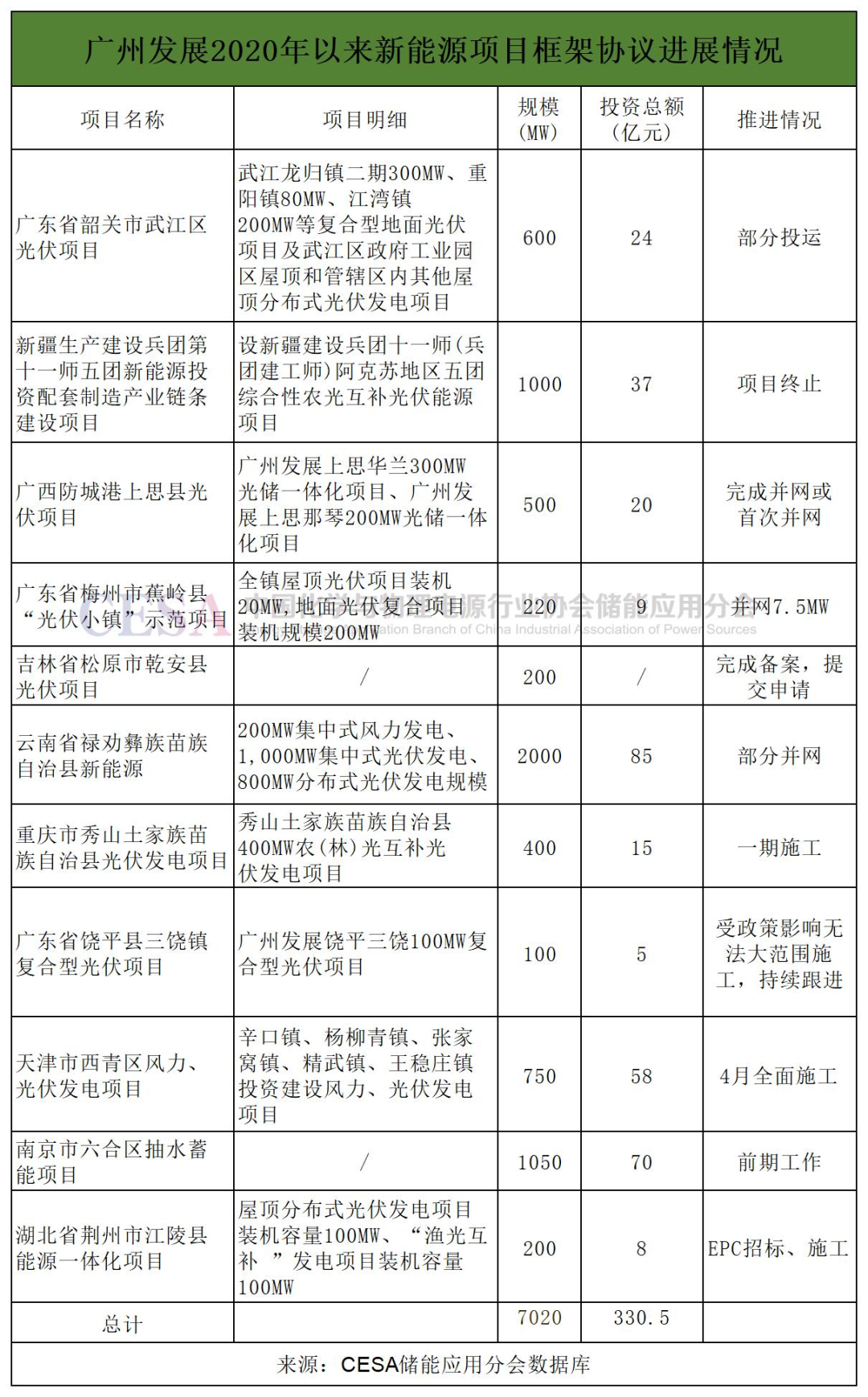 公告公示了2020年以來廣州發(fā)展及其下屬公司的項(xiàng)目情況。共涉及11個(gè)項(xiàng)目,總規(guī)模7.02GW,投資總規(guī)模超330億元。