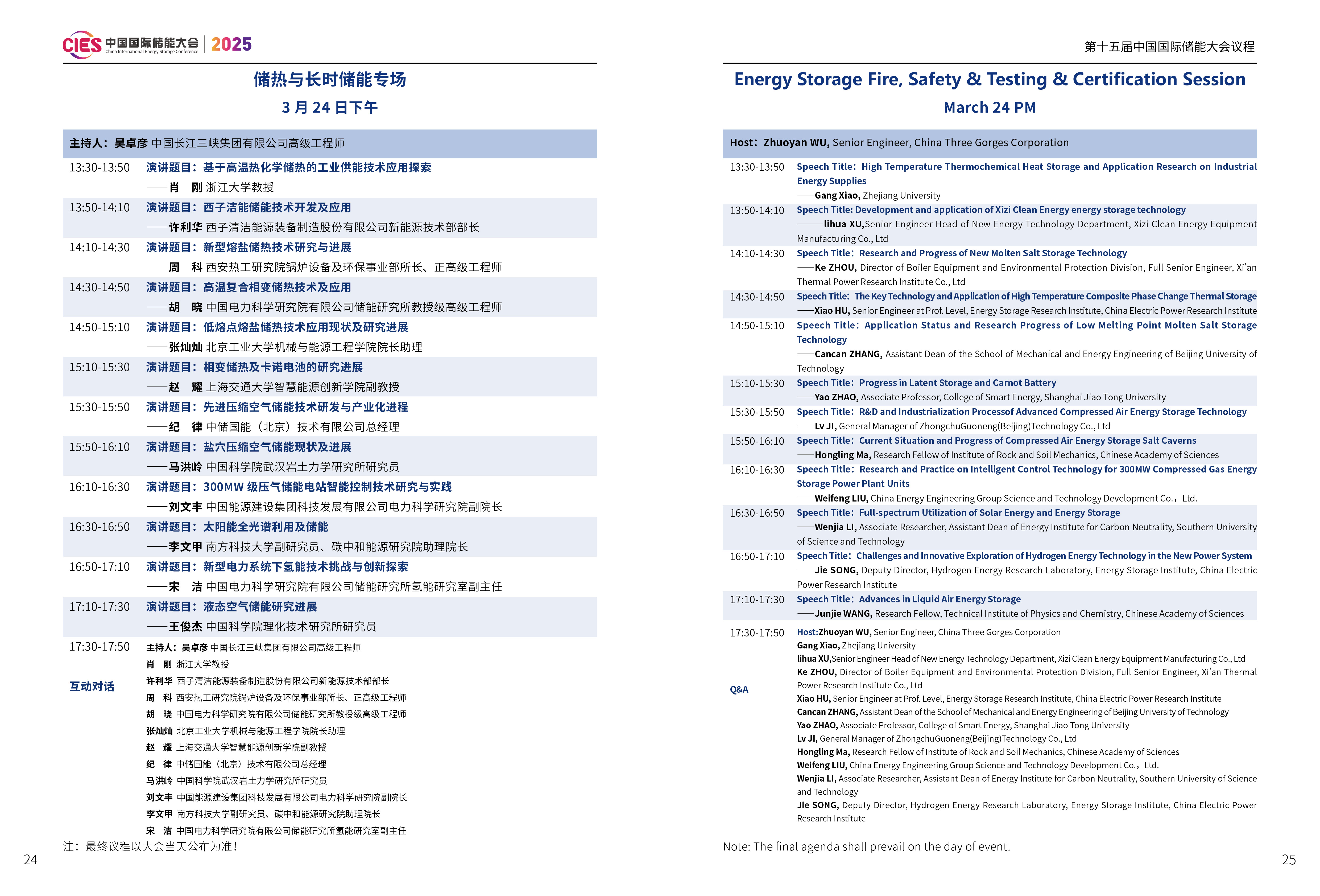 CIES2025儲能大會將設置:大會開幕式暨特邀院士專家報告、數(shù)智化配電網(wǎng)與新型儲能融合創(chuàng)新、新型電力系統(tǒng)與并網(wǎng)調(diào)度、新型儲能與新能源大基地協(xié)同發(fā)展、國際儲能、電力輔助服務、現(xiàn)貨交易及容量市場、工業(yè)綠色微電網(wǎng)、國家儲能標準宣貫、數(shù)智化新型儲能系統(tǒng)集成解決方案(上、下)、儲能消防、安全與檢測認證、新型儲能資本與投資、液流電池、儲熱與長時儲能、混合儲能、2025 新型儲能系列研究報告暨行業(yè)百強發(fā)布、全球化新型儲能供應鏈機遇與挑戰(zhàn)、數(shù)智化工商業(yè)儲能解決方案與商業(yè)案例、虛擬電廠與車網(wǎng)互動、海外儲能渠道開發(fā)與商業(yè)機遇、構網(wǎng)型儲能系統(tǒng)及項目建設、儲能專用電池與ESG、新品發(fā)布會等23個專場,以下為儲熱與長時儲能專場議程(最終議程以大會當天發(fā)布為準)。