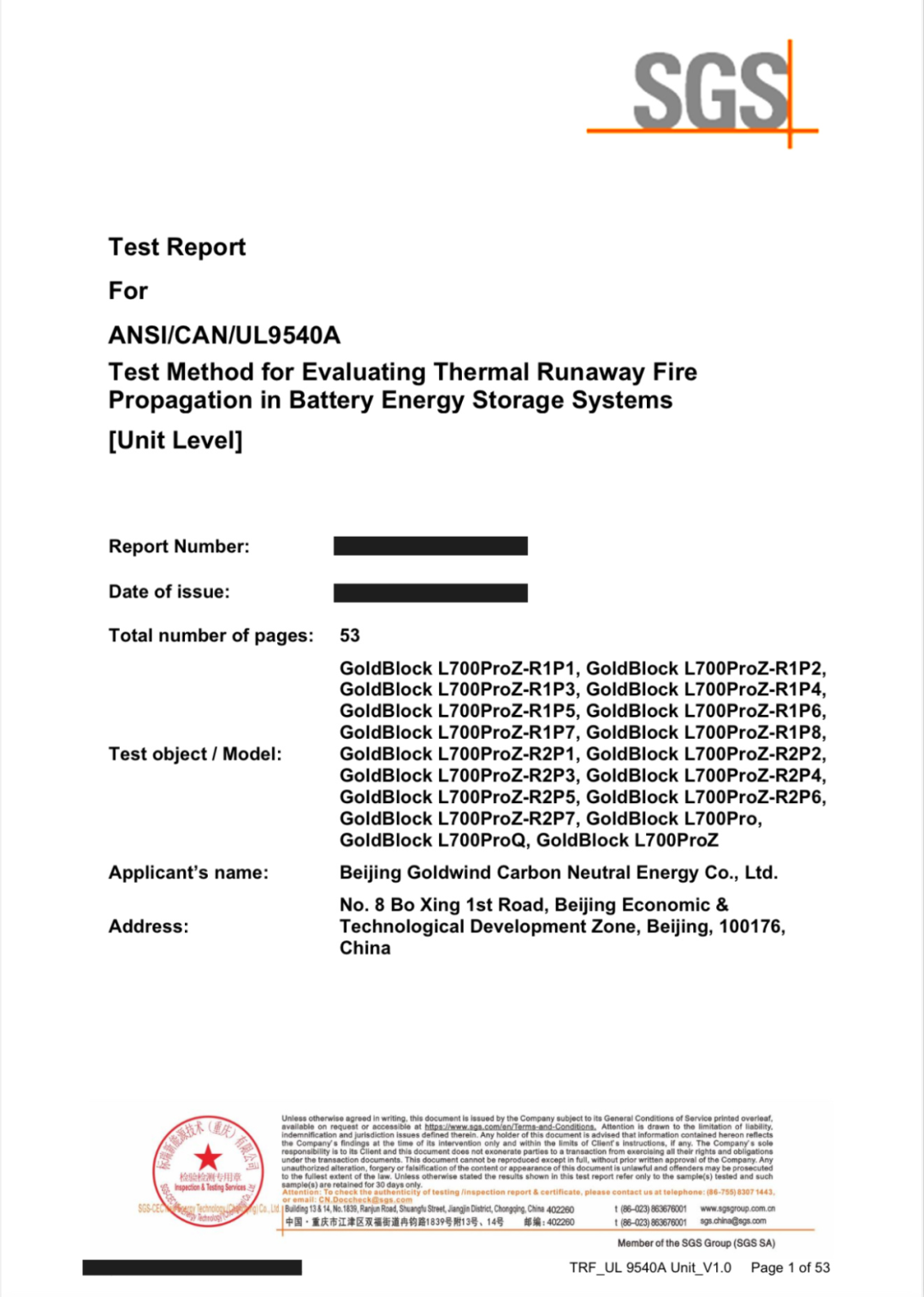 中國(guó)儲(chǔ)能網(wǎng)訊:日前,金風(fēng)科技GoldBlock L700系列儲(chǔ)能產(chǎn)品成功通過(guò)UL9540A標(biāo)準(zhǔn)全項(xiàng)測(cè)試,并獲得國(guó)際權(quán)威認(rèn)證機(jī)構(gòu)SGS頒發(fā)的測(cè)試報(bào)告。作為全球儲(chǔ)能行業(yè)的重要安全標(biāo)準(zhǔn),UL9540A測(cè)試是產(chǎn)品進(jìn)入北美等國(guó)際市場(chǎng)的關(guān)鍵“通行證”。這標(biāo)志著GoldBlock L700從部件到系統(tǒng)全部通過(guò)了全環(huán)節(jié)測(cè)試,為該系列產(chǎn)品獲取市場(chǎng)信賴打造“護(hù)城河”。