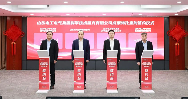 會上,研究院分別與山東電力設(shè)備公司、數(shù)字科技、新能科技簽訂科技成果轉(zhuǎn)化意向協(xié)議書。研究院作了表態(tài)發(fā)言。