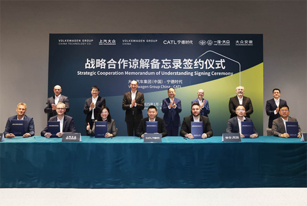 中國(guó)儲(chǔ)能網(wǎng)訊:近日,大眾汽車(chē)集團(tuán)(中國(guó))與寧德時(shí)代簽署戰(zhàn)略合作備忘錄。依托各自優(yōu)勢(shì),雙方將聚焦技術(shù)創(chuàng)新與產(chǎn)品升級(jí),全面深化在新能源汽車(chē)鋰電池研發(fā)、新材料應(yīng)用以及零部件開(kāi)發(fā)領(lǐng)域的合作,共同開(kāi)發(fā)技術(shù)先進(jìn)、具有成本競(jìng)爭(zhēng)力的電池概念及產(chǎn)品。