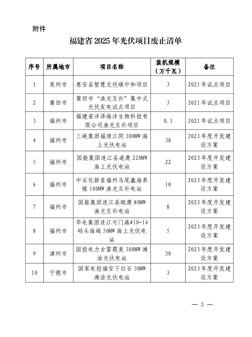 福建:關于廢止一批已不具備實施條件的光伏電站項目的通知