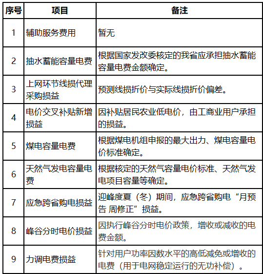 4.系統(tǒng)運行費用。主要用于歸集和疏導電力系統(tǒng)調(diào)節(jié)性成本,主要包括輔助服務費用、抽水蓄能容量電費等9項(詳見表2),根據(jù)國家核定或電力實際運行產(chǎn)生,按月核定,不同月份費用不同。一般在0.02—0.04元/千瓦時。