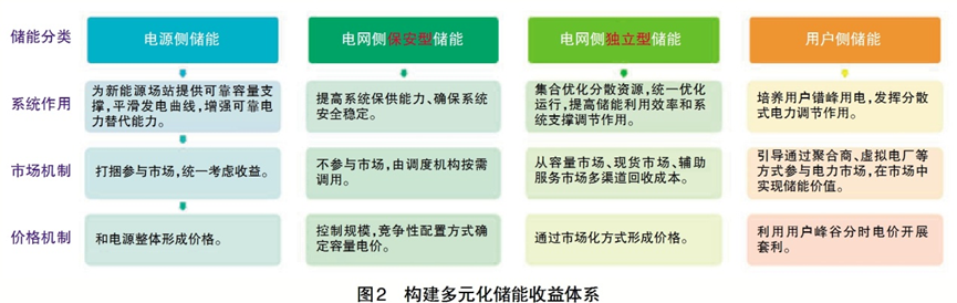 儲能價格形成機制?!笆奈濉币詠恚樾钚袠I(yè)加快發(fā)展建設(shè)步伐,以2022年為例,全國新核準抽蓄電站48座、總裝機規(guī)模6889.6萬千瓦,為歷年來核準規(guī)模最大的一年,超過前50年的投產(chǎn)總規(guī)模。作為建設(shè)新型電力系統(tǒng)的重要支撐,新型儲能發(fā)展也取得積極進展,且相比抽蓄具有與電力系統(tǒng)源-網(wǎng)-荷各環(huán)節(jié)深度融合優(yōu)勢,未來具備多元化發(fā)展應(yīng)用場景,但截至目前,新型儲能尚未形成成熟的商業(yè)模式。建議健全完善抽蓄、新型儲能等儲能價格形成機制,結(jié)合各類儲能技術(shù)特性、功能定位等,加快構(gòu)建多元化儲能收益體系,加強與電力市場有效銜接,引導儲能行業(yè)健康持續(xù)發(fā)展;特別是針對布局在關(guān)鍵電網(wǎng)節(jié)點、發(fā)揮系統(tǒng)性全局性調(diào)節(jié)保安功能的電網(wǎng)側(cè)儲能,可采取“區(qū)分類型、控制規(guī)模、適度支持、市場銜接”的方式,給予合理的容量電價支持(見圖2)。