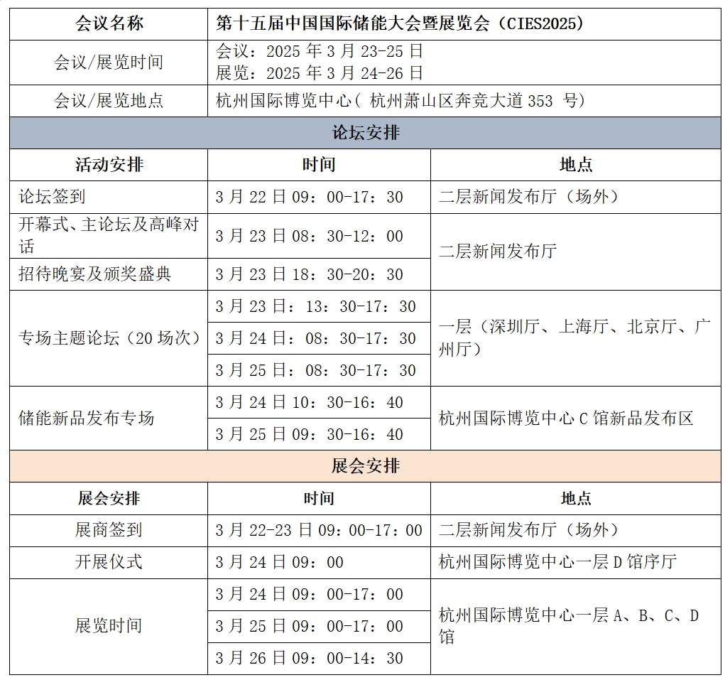 遲日江山麗,春風(fēng)花草香。第十五屆中國國際儲(chǔ)能大會(huì)暨展覽會(huì)(CIES2025)將于 2025年3月23-26日在杭州國際博覽中心如期舉行,本屆展會(huì)將迎來300+國內(nèi)儲(chǔ)能一線品牌廠商集中亮相。