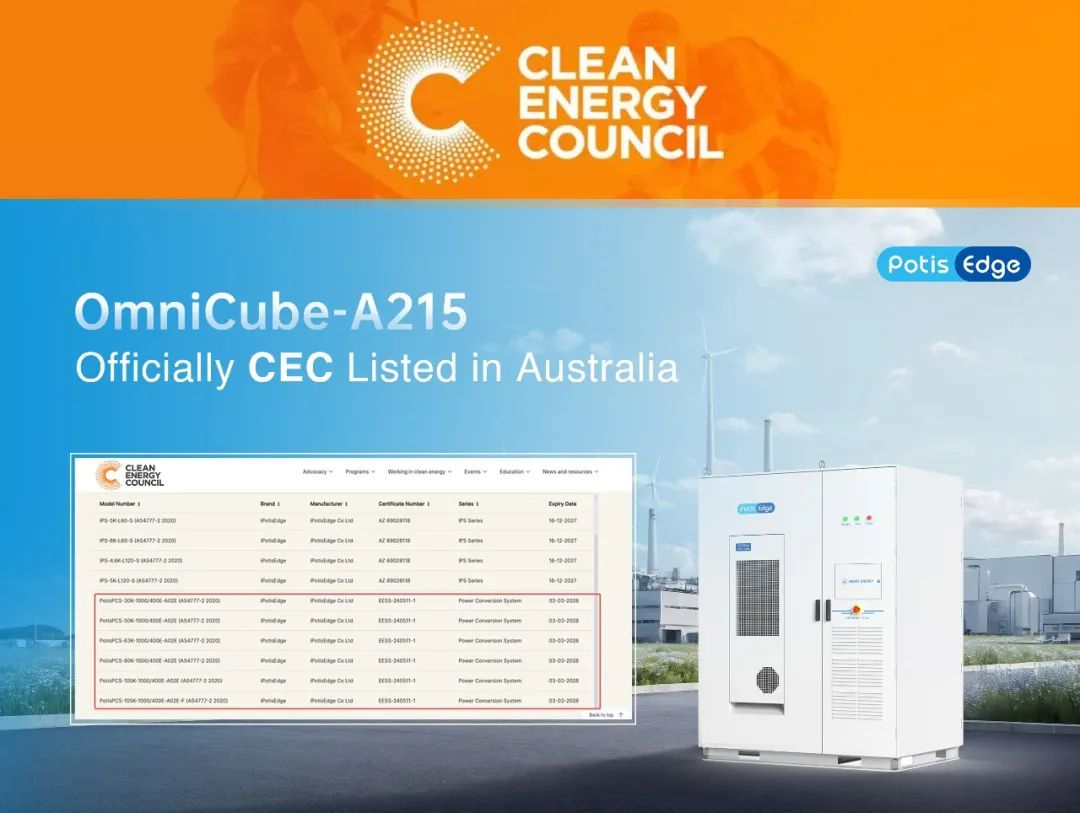 中國儲能網(wǎng)訊:近日,精控能源自主研發(fā)的OmniCube-A215儲能系統(tǒng)成功通過澳大利亞清潔能源委員會(Clean Energy Council, CEC)認證,正式躋身全球少數(shù)具備澳洲市場準入資質(zhì)的儲能供應(yīng)商行列。此次認證不僅是對精控能源技術(shù)實力的權(quán)威認可,更標志著公司在全球化戰(zhàn)略布局中邁出關(guān)鍵一步。