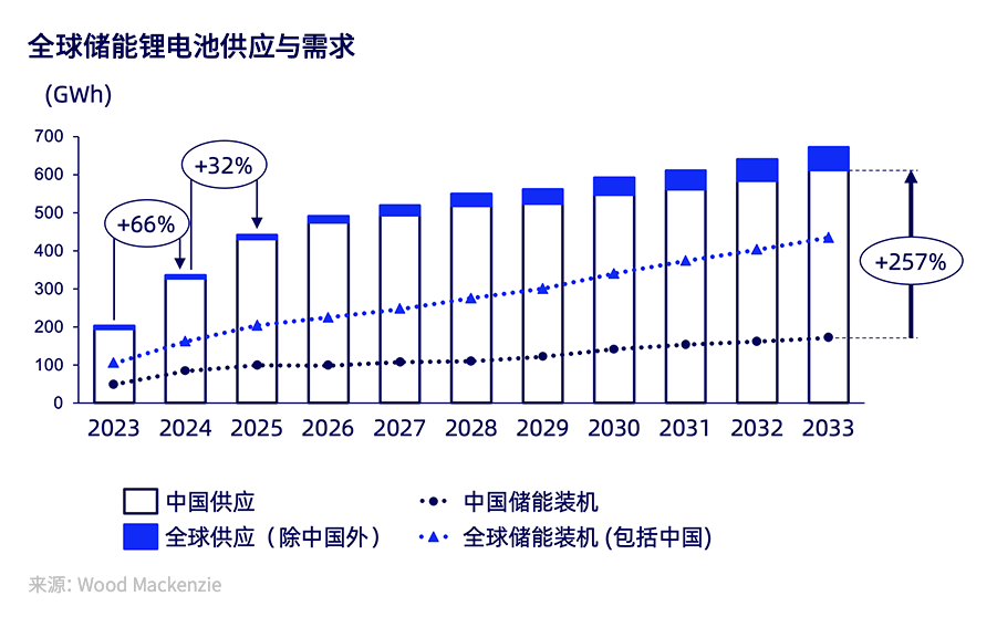 美國計(jì)劃從2026年起對(duì)中國電池征收額外關(guān)稅,加之特朗普政策帶來的不確定性,導(dǎo)致中國對(duì)美國的電池出口在2024至2025年提前加速。預(yù)計(jì)2025年,儲(chǔ)能電池全球出貨量將增長超30%。