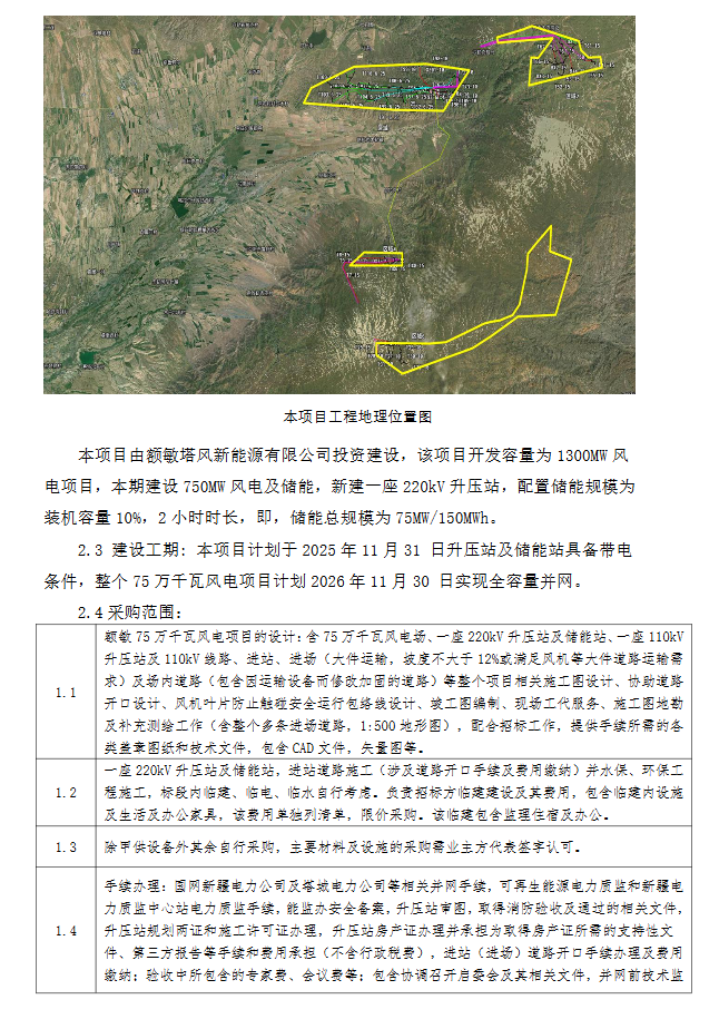 本項(xiàng)目計(jì)劃于2025年11月31日升壓站及儲能站具備帶電條件,整個75萬千瓦風(fēng)電項(xiàng)目計(jì)劃2026年11月30日實(shí)現(xiàn)全容量并網(wǎng)。