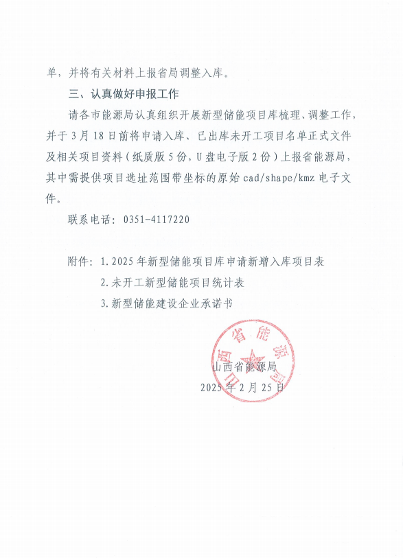 各市能源局需認(rèn)真組織開(kāi)展新型儲(chǔ)能項(xiàng)目庫(kù)梳理、調(diào)整工作并于3月18日前將申請(qǐng)入庫(kù)、已出庫(kù)未開(kāi)工項(xiàng)目名單正式文件及相關(guān)項(xiàng)目資料上報(bào)省能源局。