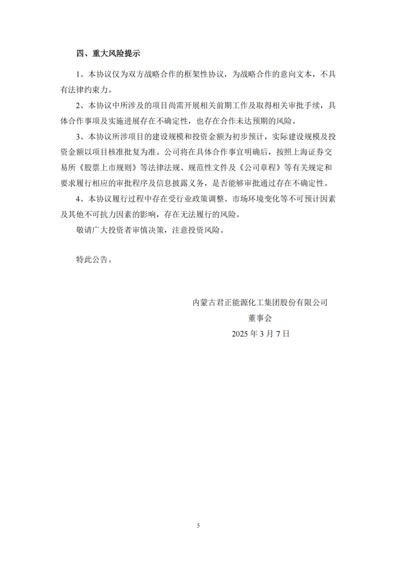 君正集團(tuán)表示,本協(xié)議的簽訂符合國(guó)家相關(guān)產(chǎn)業(yè)政策和公司長(zhǎng)遠(yuǎn)發(fā)展規(guī)劃,如項(xiàng)目順利實(shí)施,將進(jìn)一步鞏固和擴(kuò)大公司現(xiàn)有產(chǎn)業(yè)鏈條的綜合競(jìng)爭(zhēng)優(yōu)勢(shì),符合公司和全體股東的利益。