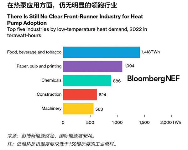 工業(yè)熱泵適用于200攝氏度(390華氏度)以下的低溫工業(yè)用熱流程,如食品飲料、紙漿和造紙行業(yè)。如今,盡管一些行業(yè)協(xié)會(huì)正在探索工業(yè)熱泵的潛力,但目前尚無一個(gè)行業(yè)在采用方面處于領(lǐng)先。