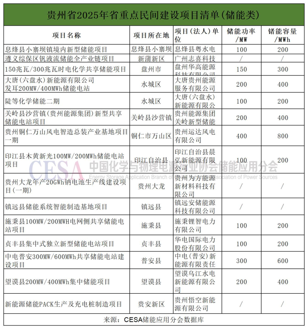 中國(guó)儲(chǔ)能網(wǎng)訊:近日,貴州省發(fā)展改革委發(fā)布2025年重點(diǎn)民間投資項(xiàng)目清單。其中包括印江縣木黃新光100MW/200MWh儲(chǔ)能電站項(xiàng)目、中電普安300MW/600MWh共享儲(chǔ)能電站建設(shè)項(xiàng)目、望謨縣200MW/400MWh集中儲(chǔ)能項(xiàng)目等15個(gè)儲(chǔ)能相關(guān)項(xiàng)目,共計(jì)超1.95GW/3.9GWh。其中電站類(lèi)項(xiàng)目11個(gè),產(chǎn)能類(lèi)項(xiàng)目4個(gè)。