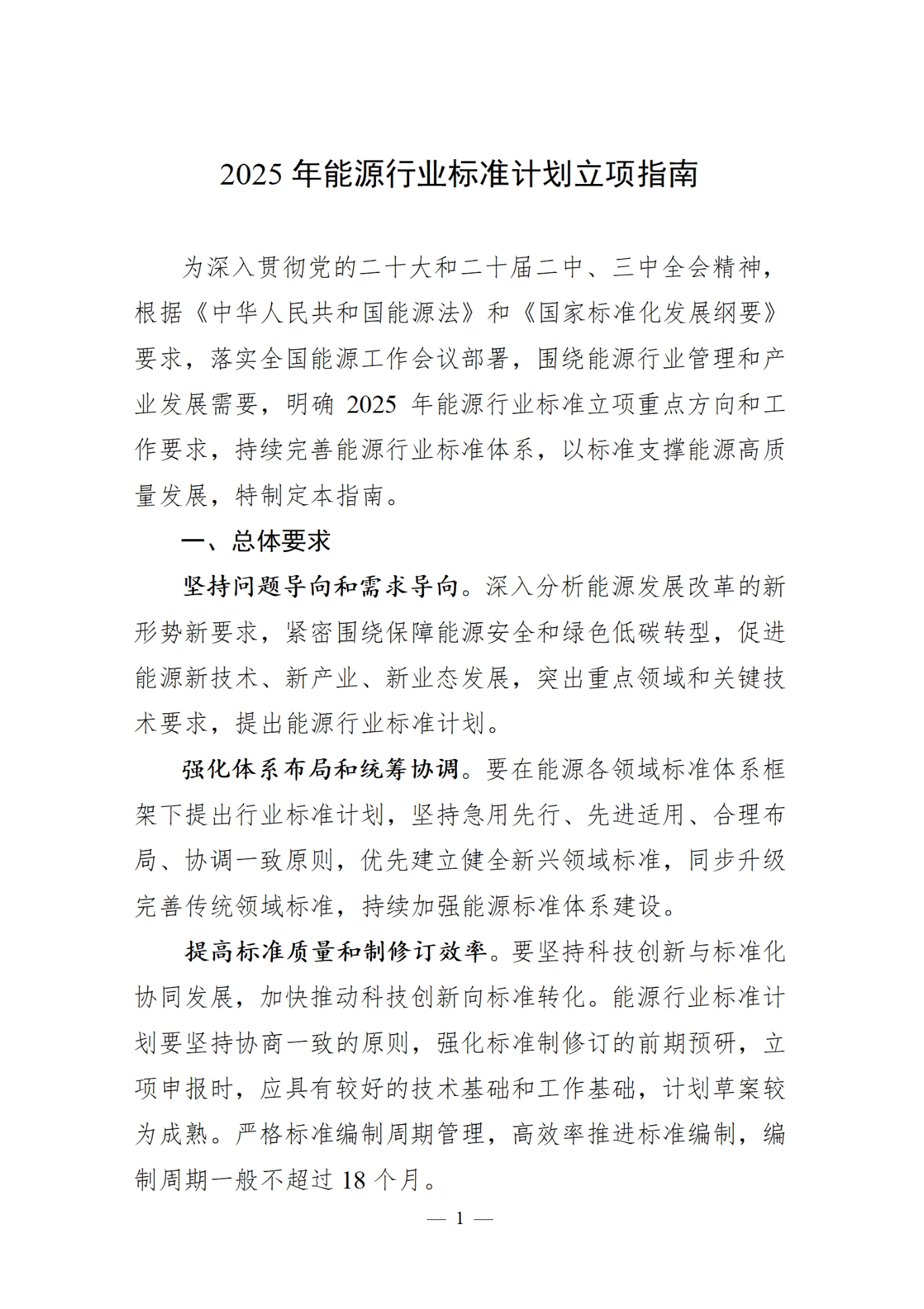 國家能源局綜合司關于印發(fā)《2025年能源行業(yè)標準計劃立項指南》的通知