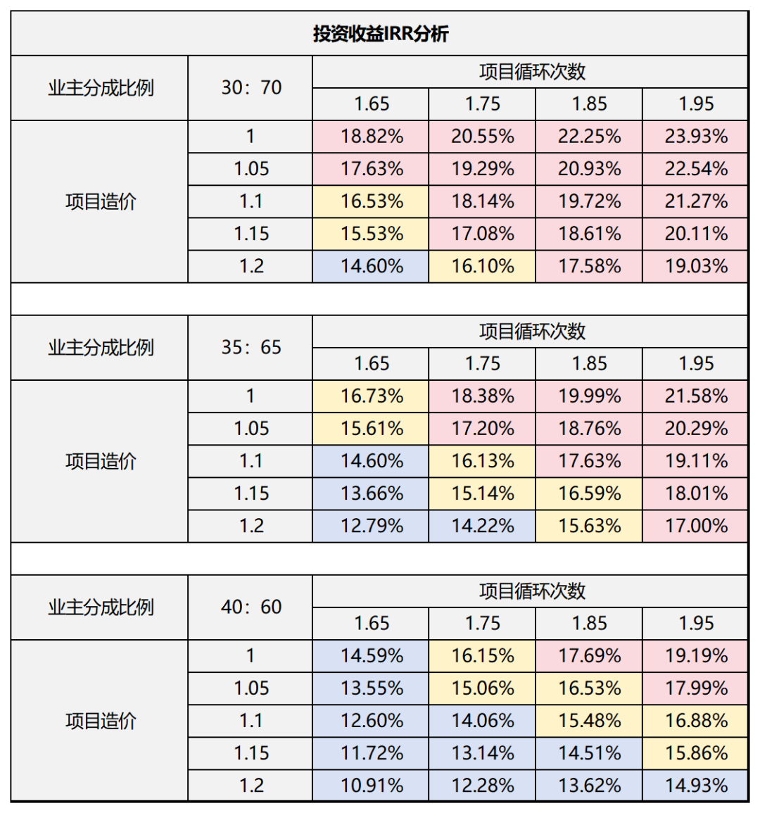 在相對(duì)確定的IRR需求之下,不同分成比例、不同造價(jià)、不同消納率都會(huì)影響決策,所以,對(duì)每一個(gè)項(xiàng)目資源明晰的判定及每一位資方?jīng)Q策條件清晰的認(rèn)知,成為項(xiàng)目能否匹配落地的關(guān)鍵。