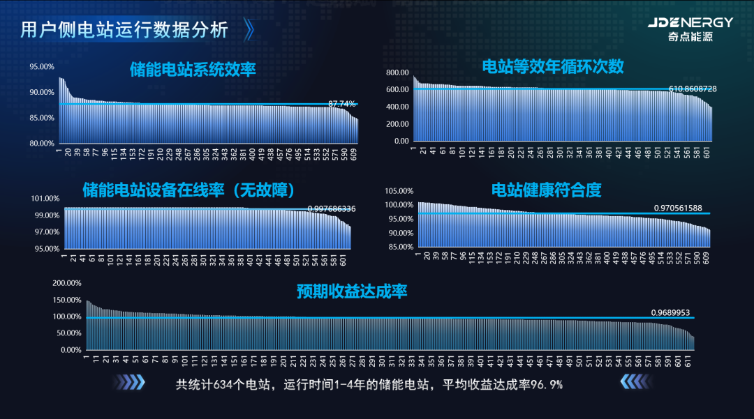 最終通過(guò)設(shè)備及電站各階段優(yōu)化措施,奇點(diǎn)投運(yùn)儲(chǔ)能電站平均收益達(dá)成率達(dá)到96.9%;25%的電站實(shí)際收益超過(guò)可研測(cè)算。