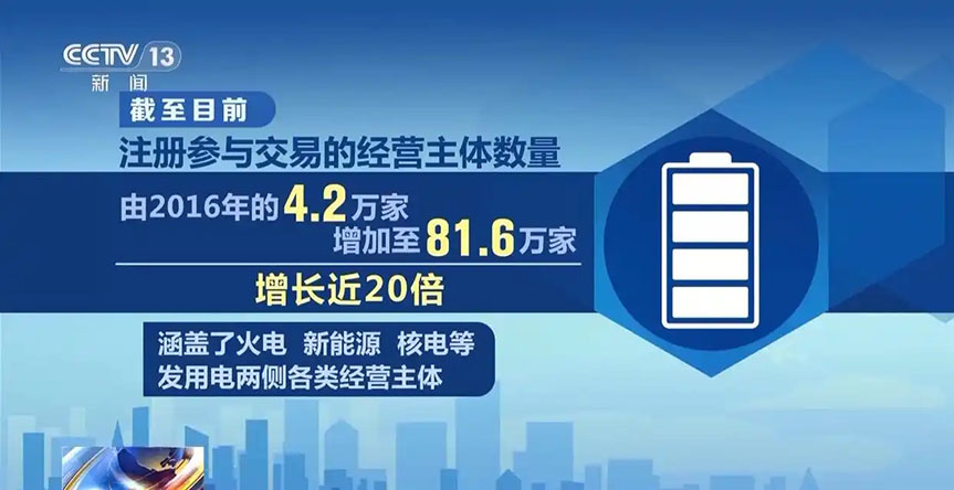 從參與市場化交易的主體來看,截至目前,注冊參與交易的經(jīng)營主體數(shù)量由2016年的4.2萬家增加至81.6萬家,增長近20倍,涵蓋了火電、新能源、核電等發(fā)用電兩側(cè)各類經(jīng)營主體。