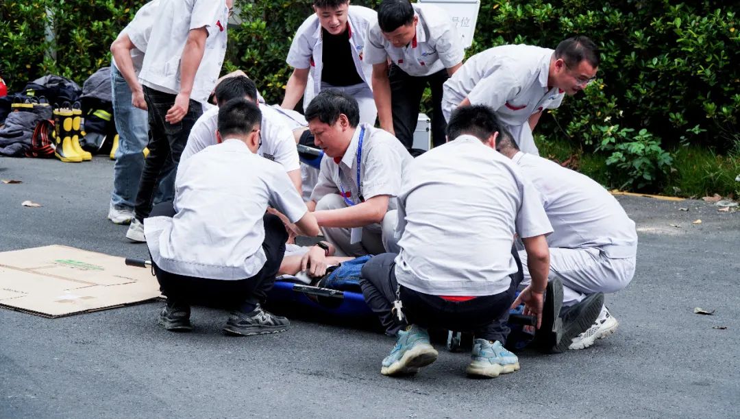 醫(yī)療救護(hù)聯(lián)動(dòng):模擬火災(zāi)中員工受傷場(chǎng)景,醫(yī)療組聯(lián)合救援力量開(kāi)展心肺復(fù)蘇、燒傷處理及轉(zhuǎn)運(yùn)演練,確保“黃金救援時(shí)間”內(nèi)完成傷員救治。