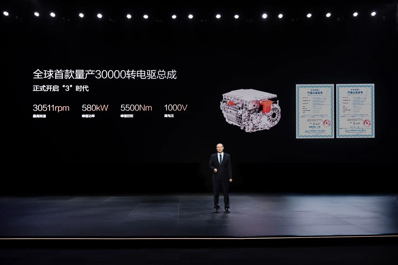 本次發(fā)布會,比亞迪還發(fā)布了全球首款量產(chǎn)3萬轉(zhuǎn)電機(jī)。比亞迪高級副總裁羅紅斌在發(fā)布會上表示:3萬轉(zhuǎn)電機(jī)不僅實現(xiàn)了車速的大幅提升,還可以大幅度降低電機(jī)重量,縮小電機(jī)體積,提高功率密度,重新定義巔峰性能,引領(lǐng)電驅(qū)總成進(jìn)入 “3” 時代。