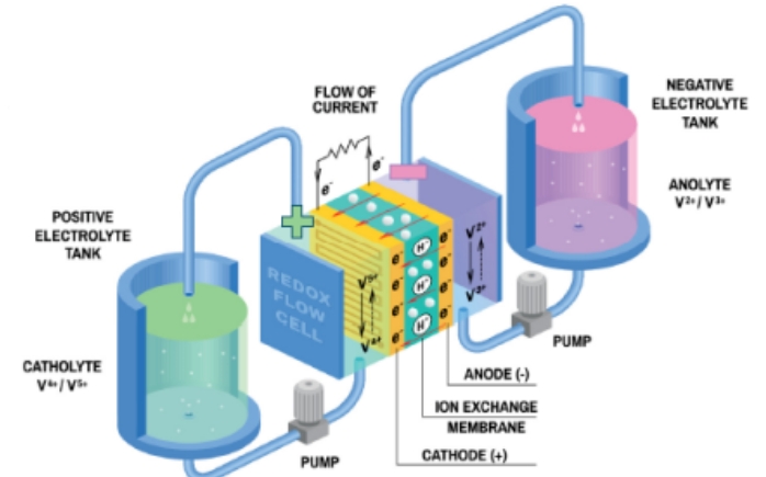 電化學(xué)儲能包括鋰離子電池儲能系統(tǒng)的多種替代品,如液流電池、金屬陽極和靜態(tài)電池。目前約有40種化學(xué)成分,其中釩氧化還原液流電池(VRFB)最為常見。