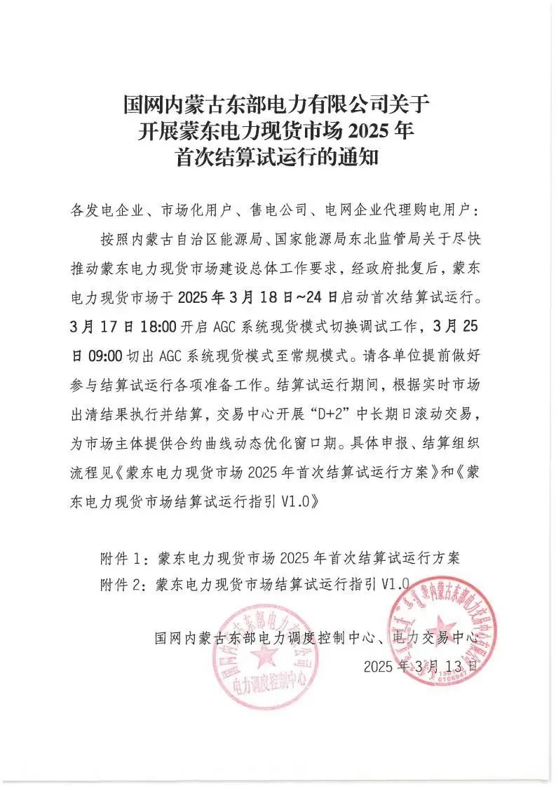 中國儲能網(wǎng)訊:近日,國網(wǎng)內(nèi)蒙古東部電力有限公司發(fā)布《蒙東電力現(xiàn)貨市場2025年首次結算試運行工作方案》《蒙東電力現(xiàn)貨市場結算試運行指引V1.0》。