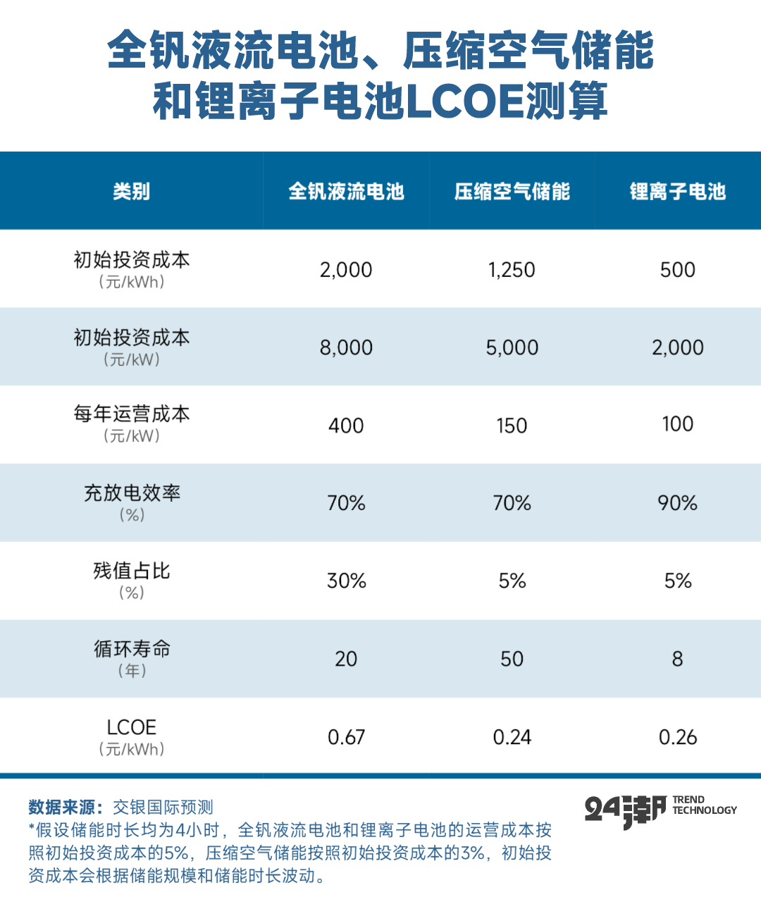 所以,交銀證券判斷 “在中短期內,鋰離子電池、壓縮空氣、液流電池三者將直接參與長時儲能的競爭?!?/span>
