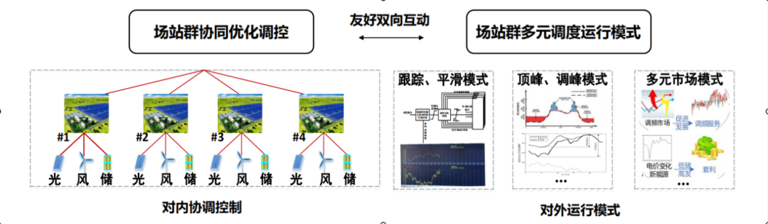 本項目以技術(shù)創(chuàng)新為突破,著力解決行業(yè)瓶頸問題,從“可測”“可控”“可調(diào)”“可支撐”4個層面實現(xiàn)“新能源+規(guī)?;瘍δ堋眻稣緦雍驼救簩拥挠袡C協(xié)調(diào),開發(fā)統(tǒng)一標(biāo)準(zhǔn)的一體化集控平臺,通過“4個核心技術(shù)+1個集控平臺”的“4+1”模式,實現(xiàn)示范項目的“全面可觀、精確可測、高度可控”。