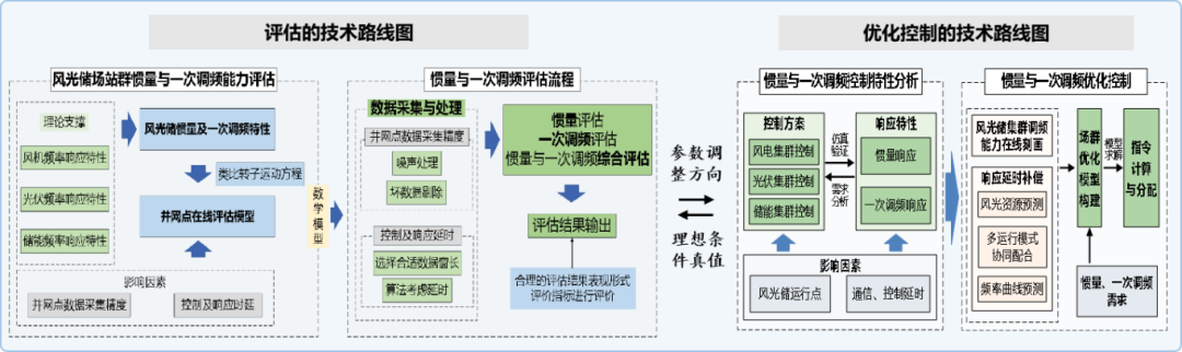 (4)“可支撐”為新能源快速一次調(diào)頻和虛擬慣量支撐技術(shù)。在電氣量測量方面,提出基于二次擬合的短時延頻率測量方法,突破了傳統(tǒng)算法只能測量5Hz以下的低振蕩頻率相量的限制;在頻率主動支撐控制方面,構(gòu)建了考慮通信延時與控制精度的優(yōu)化模型,將一次調(diào)頻響應(yīng)時間由1s降低到300ms,實現(xiàn)了對頻率支撐功率的精細(xì)化控制;在頻率主動支撐能力在線評估方面,設(shè)計了基于能量視角的場站等效調(diào)頻參數(shù)估計方法,等效慣量及等效調(diào)差率在線估計誤差均小于5%。