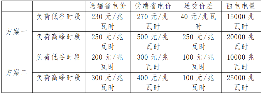 表1:安排西電出清電量的兩種方案(示例)