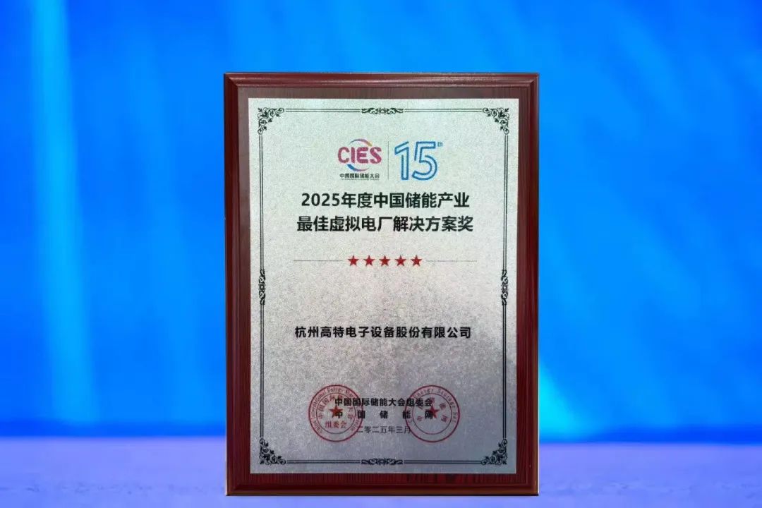 作為這場(chǎng)變革的破局者,高特電子憑借浙江省首批虛擬電廠運(yùn)營(yíng)資質(zhì)的先發(fā)優(yōu)勢(shì)與持續(xù)深耕,再次以創(chuàng)新突破與生態(tài)重構(gòu)能力贏得行業(yè)矚目,榮膺"2025中國(guó)儲(chǔ)能產(chǎn)業(yè)最佳虛擬電廠解決方案獎(jiǎng)"。