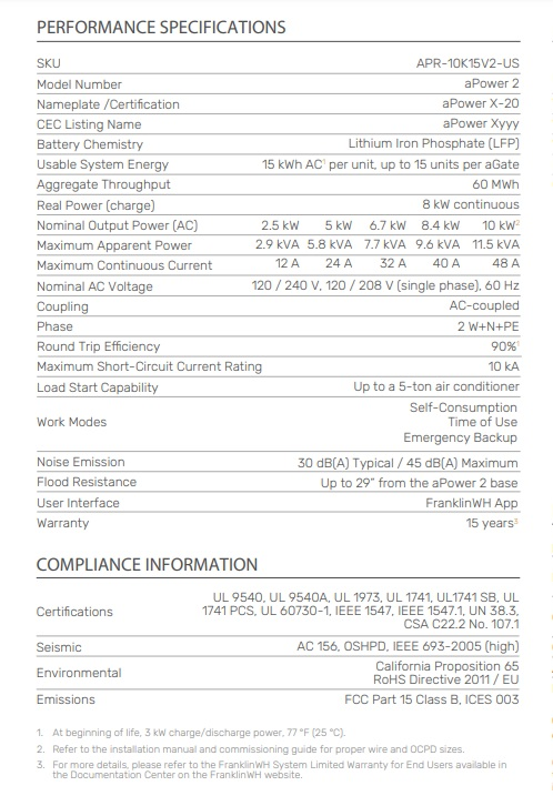 Franklin報告稱,aPower 2具有15kWh的容量和10kW的連續(xù)輸出功率,以及增強的aGate以及集成能源和FranklinWH電池的智能管理設(shè)備。它可以儲存來自太陽能、電網(wǎng)、發(fā)電機和電動汽車的電力。aPower 2的保修期為15年或60MWh吞吐量。