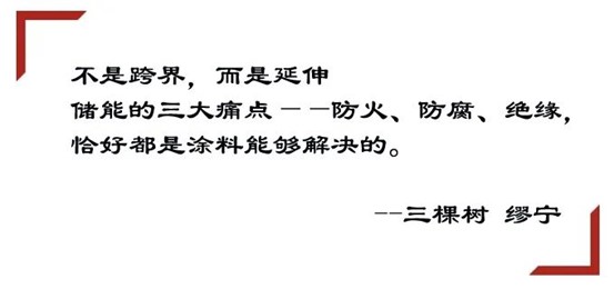 很多人問三棵樹為什么能跨界儲能、新能源領(lǐng)域,繆寧笑著說,"其實不是跨界,而是延伸。儲能的三大痛點——防火、防腐、絕緣,恰好都是涂料能夠解決的。"