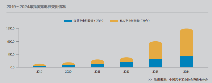 根據(jù)中國(guó)電動(dòng)汽車充電基礎(chǔ)設(shè)施促進(jìn)聯(lián)盟的統(tǒng)計(jì),截至2024年12月底,我國(guó)電動(dòng)汽車充電設(shè)施總數(shù)達(dá)到1281.8萬(wàn)臺(tái),同比增長(zhǎng)49.1%;其中公共充電設(shè)施357.9萬(wàn)臺(tái),私人充電設(shè)施923.9萬(wàn)臺(tái)。按照2025年1月公安部發(fā)布的全國(guó)新能源汽車保有量3140萬(wàn)輛計(jì)算,我國(guó)車樁比為2.44:1。2024年,我國(guó)電動(dòng)汽車充電設(shè)施增量為422.2萬(wàn)臺(tái),月均增長(zhǎng)35.2萬(wàn)臺(tái)。全年充電量突破1100億千瓦時(shí),同比增長(zhǎng)38%。全國(guó)高速公路服務(wù)區(qū)累計(jì)建成充電樁3.5萬(wàn)臺(tái),服務(wù)區(qū)覆蓋率達(dá)到98%。